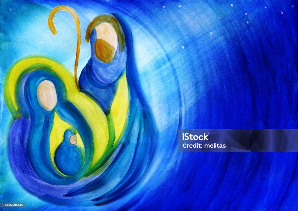 Bethlehem Nativity Scene Abstract Watercolor Christmas Scene